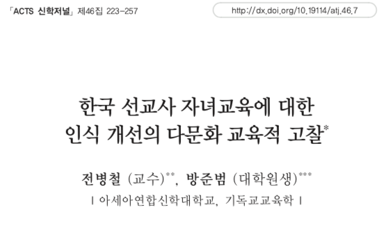 한국 선교사 자녀교육에 대한 인식 개선의 다문화 교육적 고찰연구소 2021. 1. 23. 14:33